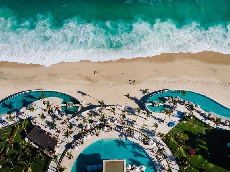 Nuestro resort contrasta espacios blancos prístinos con las amplias vistas al océano azul desde todos los rincones, capturando perfectamente la esencia de Los Cabos. Permita que sus clientes experimenten los contrastes dramáticos del Mar de Cortés desde la privacidad del balcón de su suite para un recuerdo inolvidable.
