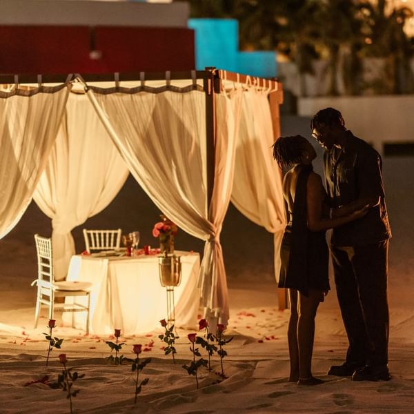 Enciende tu pasión con una mágica cena privada para dos, acompañada de una botella de champagne Taittinger al atardecer, y déjate llevar junto a tu ser amado.